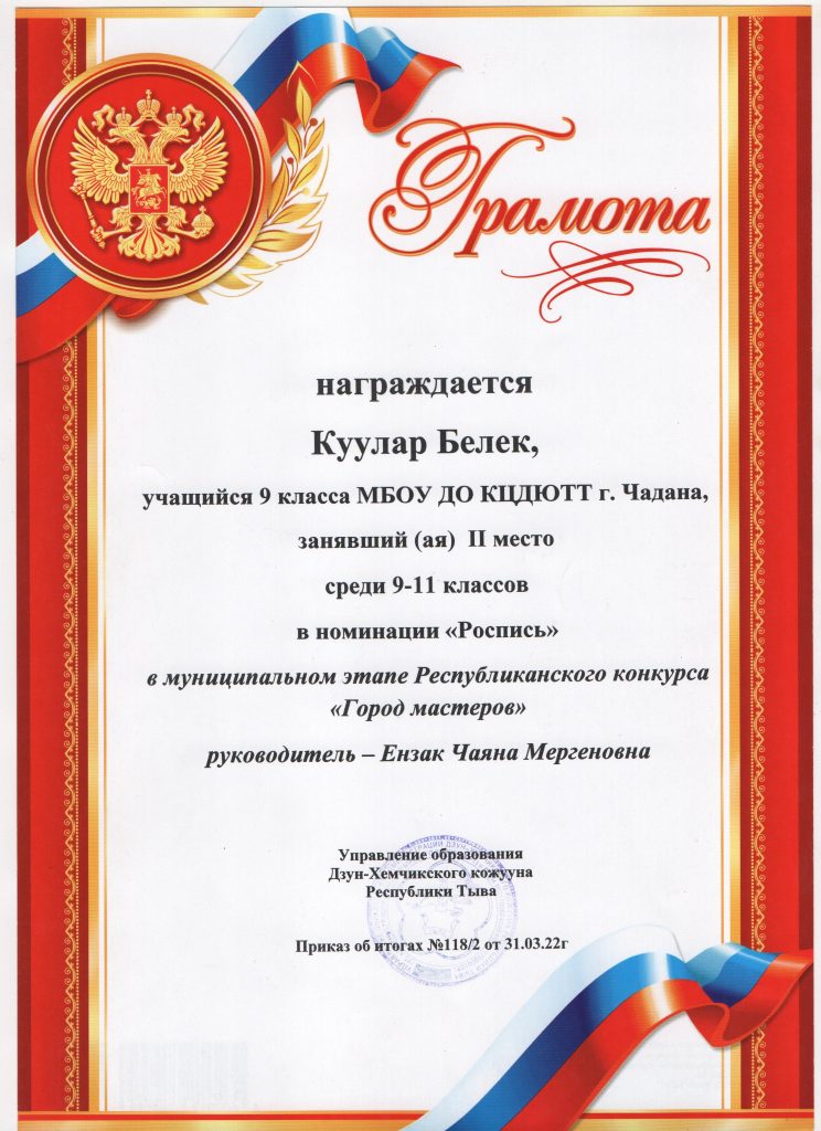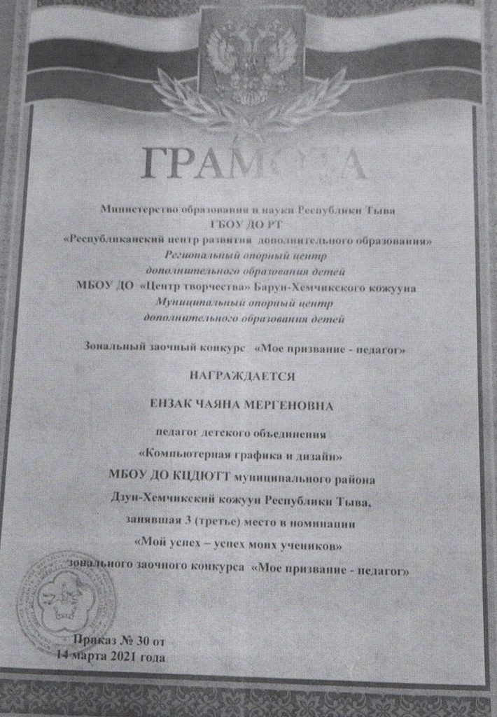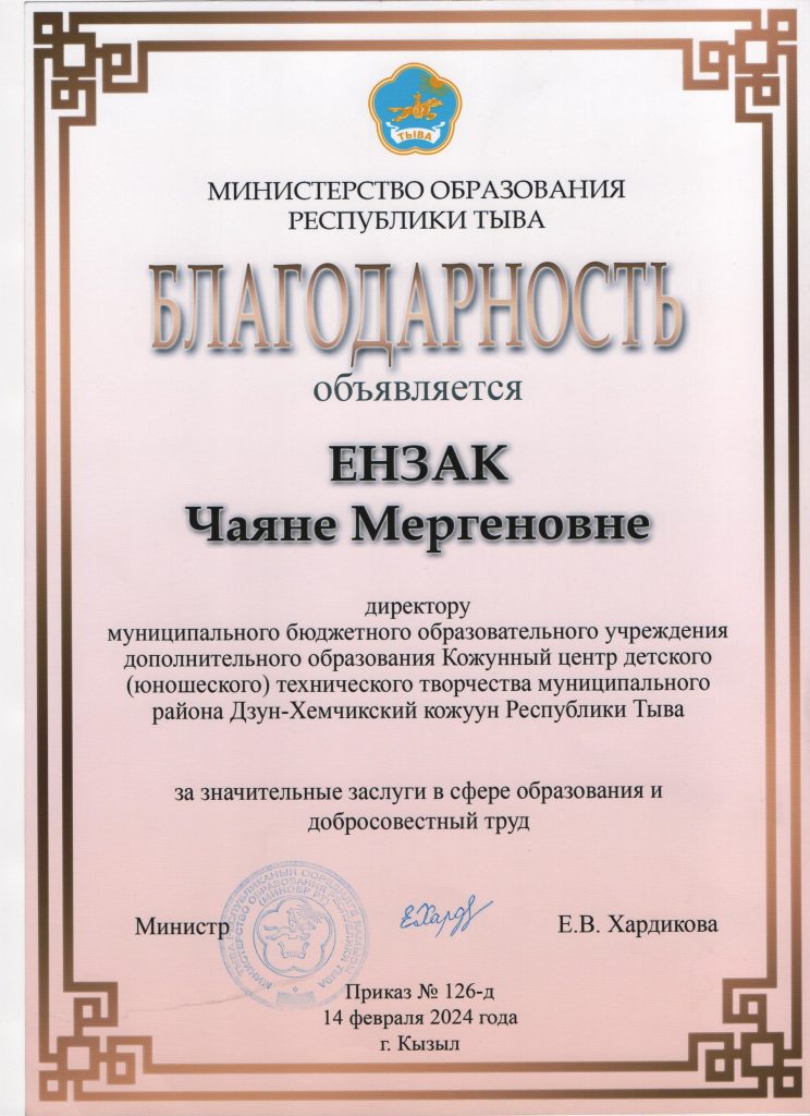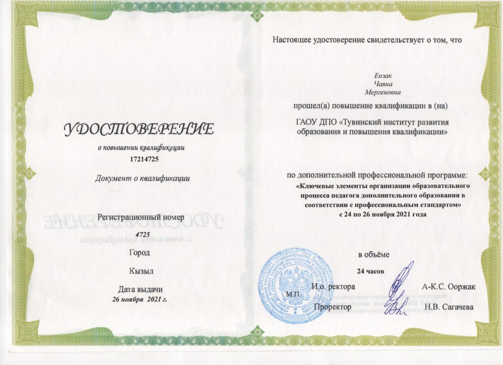 ФИО: Ензак Чаяна Мергеновна